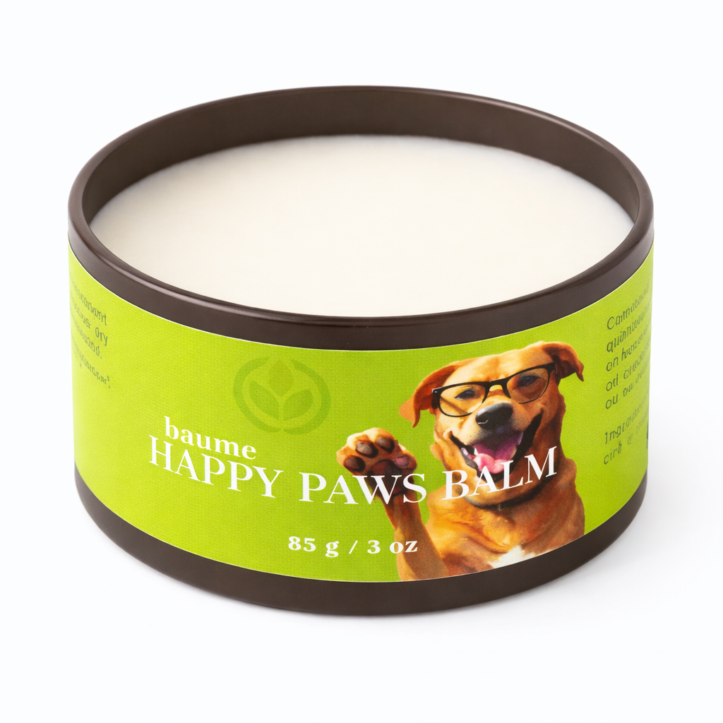 Happy Paws Balm is a rich, protective balm designed to care for hardworking paws. Whether from daily walks, rough terrain, or seasonal dryness, this gentle formula helps keep paw pads feeling soft, supple, and comfortable.