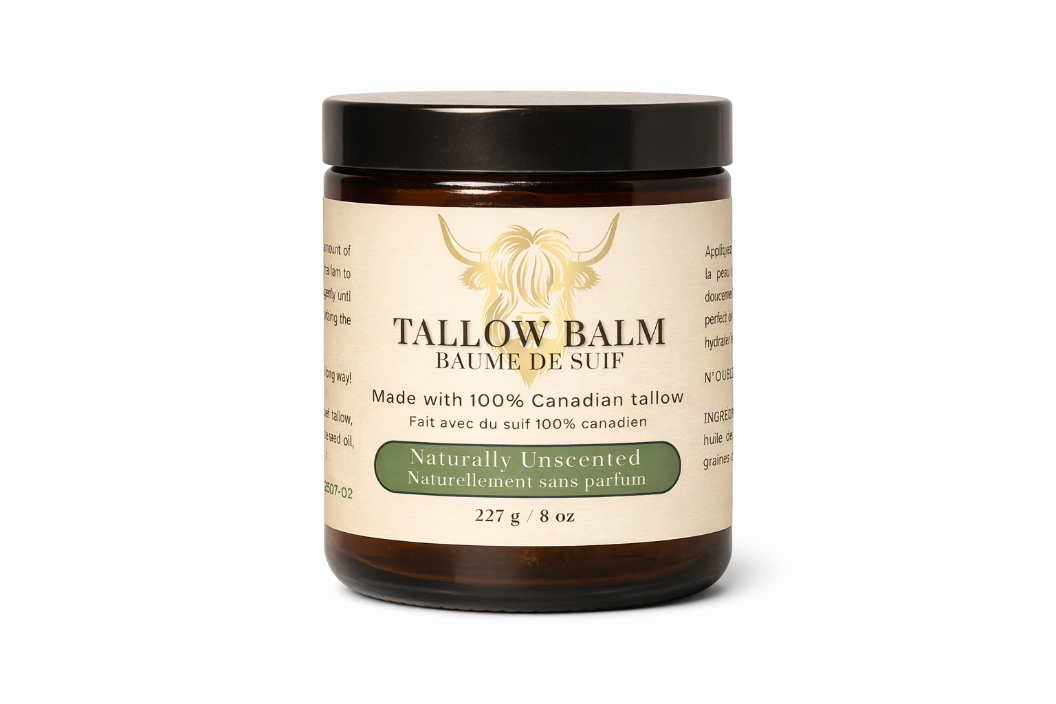 Crafted from 100% pure Canadian beef tallow, our balm is deeply nourishing and especially beneficial for aging skin as it helps restore softness, supports skin repair and strengthens the moisture barrier. Its natural fatty acids closely mimic human sebum, it delivers lasting hydration that smooths fine lines, improves elasticity, and calms dryness and irritation—leaving mature skin feeling supple, soothed, and beautifully renewed.